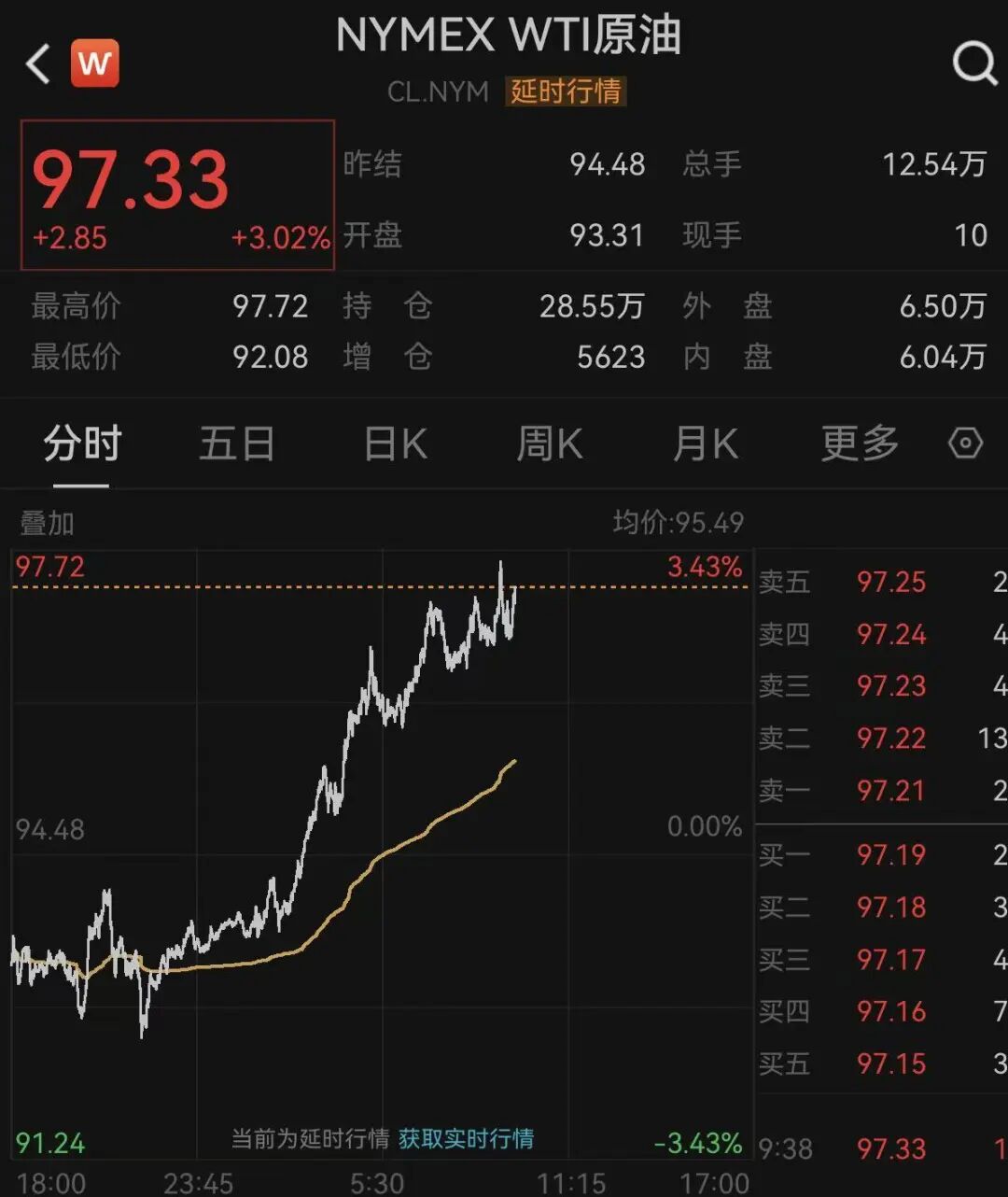 原油在晚间继续飙升,截至发稿,WTI原油已涨逾3%。