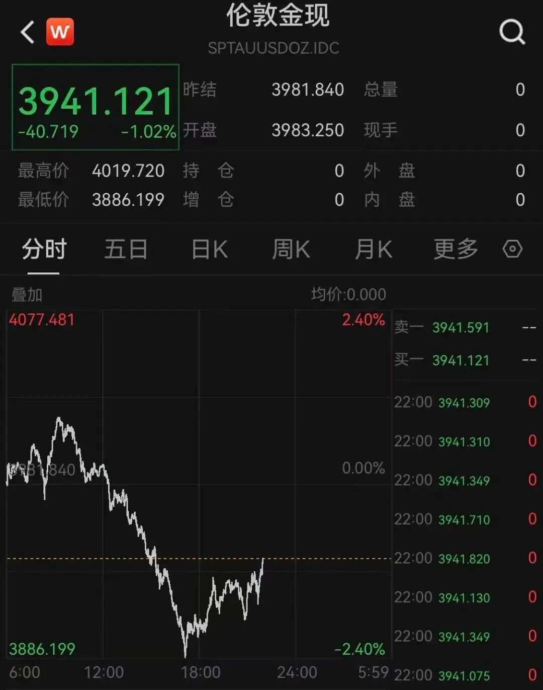 现货黄金价格突变。