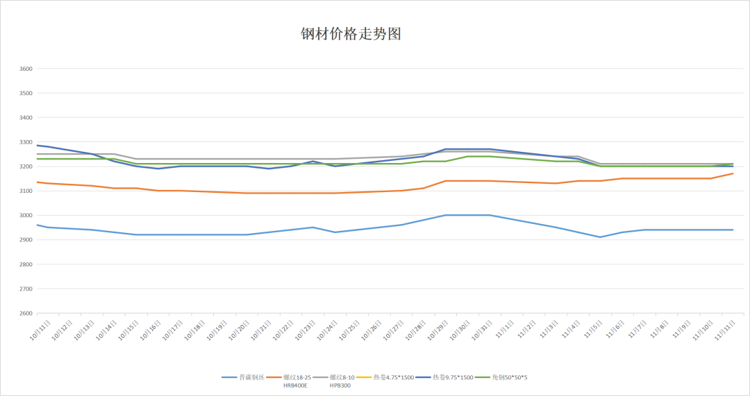 品类 规格 价格 涨跌 月均价 国产矿 66% 1005 稳 1019 进口矿 PB粉 790 涨 791 PB块 905 涨 909 焦炭 准一 1540 稳 1526 废钢 重A 2240 稳 2256 钢筋压块 2230 稳 2246 钢坯 普碳 2930 稳 2934 螺纹 18-25 HRB400E 3170 涨 3147 8-10 HPB300 3210 稳 3219 热卷 4.75*1500 3200 稳 3210 9.75*1500 3200 稳 3210 角钢 50*50*5 3210 涨 3207