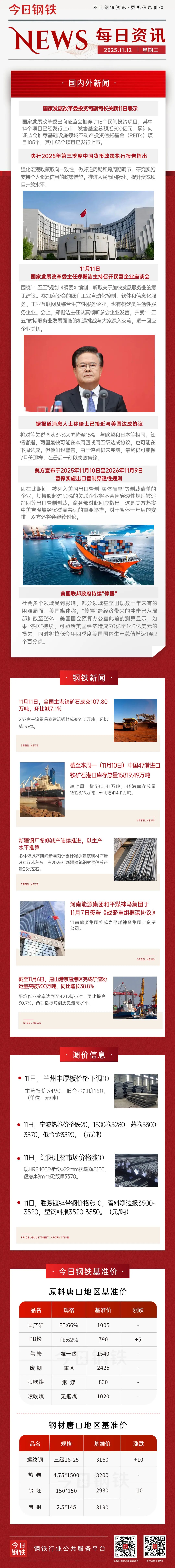 11月12日钢市早报今日钢铁2025年11月12日 08:58河北关于本文:编辑、制图/李娜校审/许新颖本文章内容为作者个人观点,不代表本平台立场。文章内容仅供参考并不构成投资及应用建议。