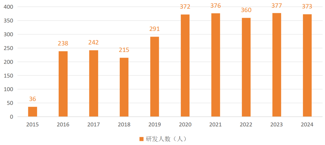 近10年金诚信在职研发人员情况图