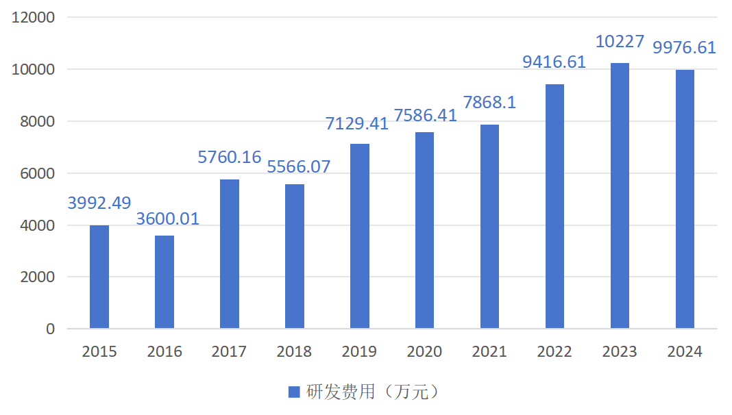 近10年金诚信研发投入图
