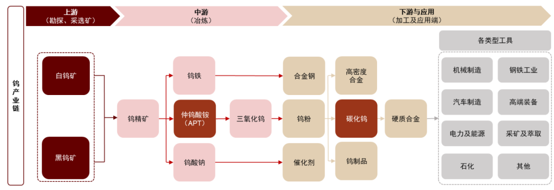 Abstract 摘要 一问:钨价向下游的价格传导情况如何?首先,钨价向APT、钨粉的传导较为顺畅,且两者加工费均较年初明显提升。其次,年初至今下游企业通过产品提价、推出新品等方式实现价格传导,叠加原料库存受益于钨价上涨,毛利率持续提升。11月前后硬质合金、钨化工企业再次计划提价,涨价呈扩散态势。 二问:产业链库存情况如何?生产商环节,库存已去化至较低水平。据亚洲金属网,10月国内APT、碳化钨生产商库存为800吨、1027吨,环比-31%、-36%。下游企业环节,根据我们测算,三季度企业销售较为顺畅,且原材料库存囤货现象并不显著,叠加产业链存在涨价预期,我们预计补库需求仍有较强支撑。 三问:出口政策是否压制钨制品出口?我们认为对出口量压制有限,并有望驱动下游高附加值产品出口占比提升。数量上看,今年2月出口政策发布,当月钨制品出口量环比-50%至868吨。3-10月基本企稳,月均出口1591吨,恢复至2024年月均值的84%。结构上看,1-10月受政策影响的钨制品出口量占比20.5%,较去年-20.8ppt;偏钨酸铵+未锻轧钨占比28.4%,较去年+14.7ppt。 四问:钨价牛市是否引发全球供给冲击?我们认为,考虑到国内供给由于品位下降、规范趋严等因素持续偏紧,海外除哈萨克斯坦之外,增量供应不确定性较大且放量较慢,未来3-5年全球钨供给依然维持偏紧态势,但各国对钨资源的战略性动作值得关注。 风险 全球钨供给超预期增加;钨价波动超预期;下游需求不及预期。 Text 正文 1.当前钨价向下游的传导情况如何? 钨价向APT、钨粉的传导较为顺畅 从涨幅上看,据亚洲金属网,截至12月5日,中国钨精矿价格(65%WO3口径)自年初以来累计上涨20.9万元至35.1万元/吨,期间多次创下历史新高,累计涨幅+147%。同时,国内仲钨酸铵(APT)、钨粉价格分别达51.05万元/吨、815.0元/公斤,年初至今涨幅+143%、+159%。考虑到年初钨精矿成本在APT、钨粉环节的成本占比分别为95%、94%左右,以及APT和钨粉报价方式随行就市的特点,我们认为APT、钨粉对钨价的传导较为顺畅。 图表1:2025年年初至今中国钨精矿价格走势 注:1)数据截至2025年12月5日 资料来源:亚洲金属网,中金公司研究部 图表2:2004年以来中国钨精矿价格走势 注:1)数据截至2025年12月5日 从加工费看,截至今年12月初,APT和钨粉环节的加工费较年初改善明显。据亚洲金属网,截至12月5日,在剔除原料成本后,我们测算出单吨APT加工费为1.9万元,较年初1.2万元水平明显上升;我们测算钨粉加工费已达60元/公斤以上,同样明显高出年初3-4元/公斤的水平。 图表3:近一年国内APT加工费走势 注:1)报价口径为折合WO3含量不小于88.5%的仲钨酸铵,中国出厂价;2)数据截至2025年12月5日;3)加工费=APT价格-钨精矿成本,按1吨APT消耗1.4吨钨精矿计算 资料来源:亚洲金属网,中金公司研究部 图表4:近一年国内钨粉加工费走势 注:1)报价口径为钨含量不小于99.95%的钨粉,中国出厂价;2)数据截至2025年12月5日;3)加工费=钨粉价格-原料成本,按1吨钨粉消耗1.3吨氧化钨计算 图表5:钨产业链示意图 资料来源:弗若斯特沙利文,中金公司研究部 下游企业通过产品提价、推出新品等方式实现价格传导,年初至今整体盈利情况持续向好 我们对A股一体化钨企、下游刀具企业进行分析:一是自身拥有一定钨矿产量、产业链一体化钨业公司,整体毛利率及盈利情况持续向好。四家上市钨企1Q25-3Q25整体毛利率分别为17.02%、18.75%、19.21%,二、三季度环比分别变动+1.7ppt、+0.5ppt;四家公司2025年前三季度归母净利润合计28.7亿元。其中,中钨高新2024年底注入柿竹园钨矿,注入完成后公司利润水平明显抬升。参考中钨高新调整后归母净利润后,四家一体化钨企2025年前三季度归母净利润累计同比为+28.6%。 图表6:四家一体化钨业龙头毛利率变化情况(1Q25-3Q25) 资料来源:iFinD,公司公告,中金公司研究部 图表7:四家一体化钨业龙头归母净利润情况(1Q24-3Q25) 注:中钨高新2024年底注入柿竹园钨矿,我们在计算利润增速时参考其调整后归母净利润 二是聚焦下游业务的四家刀具龙头,四家公司毛利率在3Q25呈加速向上态势。四家刀具龙头1Q25-3Q25整体毛利率分别为32.9%、33.9%、37.7%,二、三季度环比分别变动+1.0ppt、+3.8ppt;四家公司前三季度净利润合计5.42亿元,累计同比+30.5%。 另据中国超硬材料网,2025年11月多家硬质合金企业发布新一轮涨价函,这已是硬质合金行业今年第三轮集中调价。11月6日前后,多家硬质合金企业宣布对部分产品进行提价,部分企业计划自11月起将数控刀具产品再度上调15%。 图表8:四家下游刀具龙头毛利率变化情况(1Q25-3Q25) 资料来源:iFinD,公司公告,中金公司研究部 图表9:四家下游刀具龙头归母净利润情况(1Q24-3Q25) 资料来源:iFinD,公司公告,中金公司研究部 此外,钨价上涨已传导至钨化工领域。据TheElec网站,截至2025年10月底,SK Specialty、Foosung、Kanto Denka Korea等生产商已通知下游半导体企业,由于钨价上行,2026年起这些生产企业部分六氟化钨产品价格将上调70-90%。 2.当前钨产业链库存情况如何? 生产商库存总体处于历史较低水平。据亚洲金属网,截至2025年4月,国内钨精矿生产商库存量仅100吨,处于历史低位,此后未见该项数据。此外,截至今年10月,APT生产商库存为800吨,环比-31%,降至2019年以来APT生产商库存11%分位水平;碳化钨生产商库存量1027吨,环比-36%。 图表10:国内APT生产商库存情况(2019年初-2025年10月) 资料来源:亚洲金属网,中金公