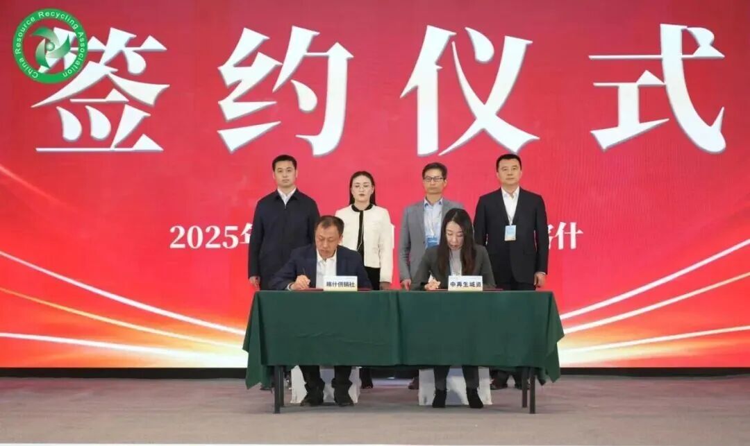 会上,中国再生资源回收利用协会分别与北京商务中心区国际发展集团有限公司、浙江恒逸集团有限公司签署合作协议;喀什市供销合作社联合社与中再生城资(北京)环保科技发展有限公司签署合作协议。中国再生资源开发集团有限公司党委委员、常务副总经理孔庆凯,新疆维吾尔自治区供销合作社联合社理事会副主任何贤志,中华全国供销合作总社经济发展与改革部副处长杨凤彬,喀什市人民政府党组成员、副市长杨艳峰作为见签嘉宾。