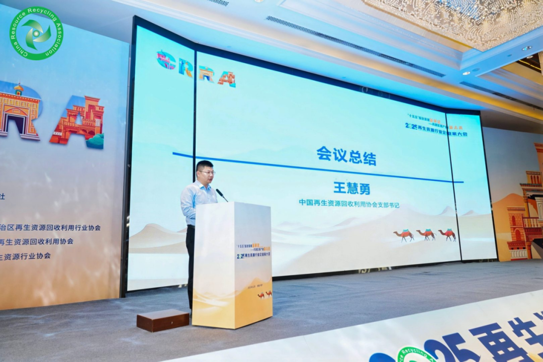 中国再生资源协会支部书记王慧勇在总结讲话中表示本次会议内容充实、成果丰硕,与会嘉宾多维度分享真知灼见,聚焦细分领域创新与 “十五五” 发展路径,为行业技术升级与模式创新提供了有益借鉴。当前,再生资源产业正处于“双碳”目标与“十五五”规划启航的关键节点,希望业界同仁以本次大会为契机,锚定绿色发展方向,深化务实合作,以技术创新为驱动,以平台协同为纽带,共同推动再生资源行业在“十五五”期间更高质量发展,为构建绿色低碳循环发展经济体系,服务国家战略大局贡献更大力量。