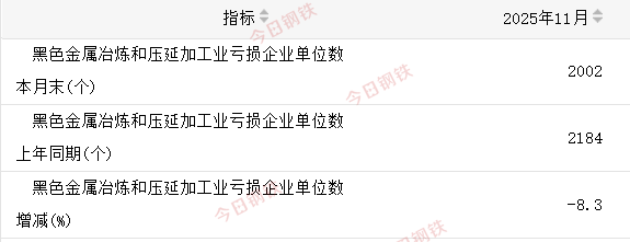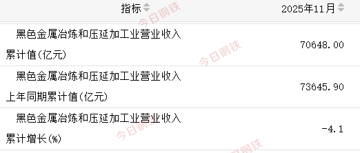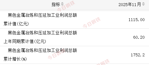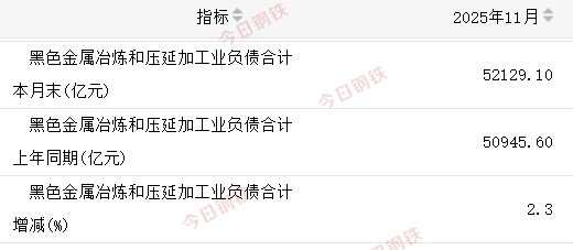 营业收入 2025年前11月,营收累计为70648亿元,比去年同期减少了2997.9亿元。 利润总额 2025年前11月,利润总额1115亿元,比去年同期增加1054.8亿元。 亏损企业亏损总额 2025年前11月,亏损企业亏损总额590.3亿元,比去年同期减少了603.8亿元。 亏损企业单位数 2025年11月末,亏损企业单位数2002个,比去年同期减少182个。 负债合计 2025年11月末,负债总额52129.1亿元,比去年同期增加了1183.5亿元。 平均用工人数 截至2025年11月末,平均用工人数174.8万人,相比去年同期累计减少5.1万人。 图片来源网络 仅用于示意 综上,行业持续呈现“营收微调、利润大增、亏损收窄”的良性发展态势,行业结构优化与质量效益提升成效显著,为工业经济稳定增长提供了重要支撑。展望未来,随着各类政策体系的完善,黑色金属冶炼行业将持续向绿色化、高端化、智能化方向迈进。