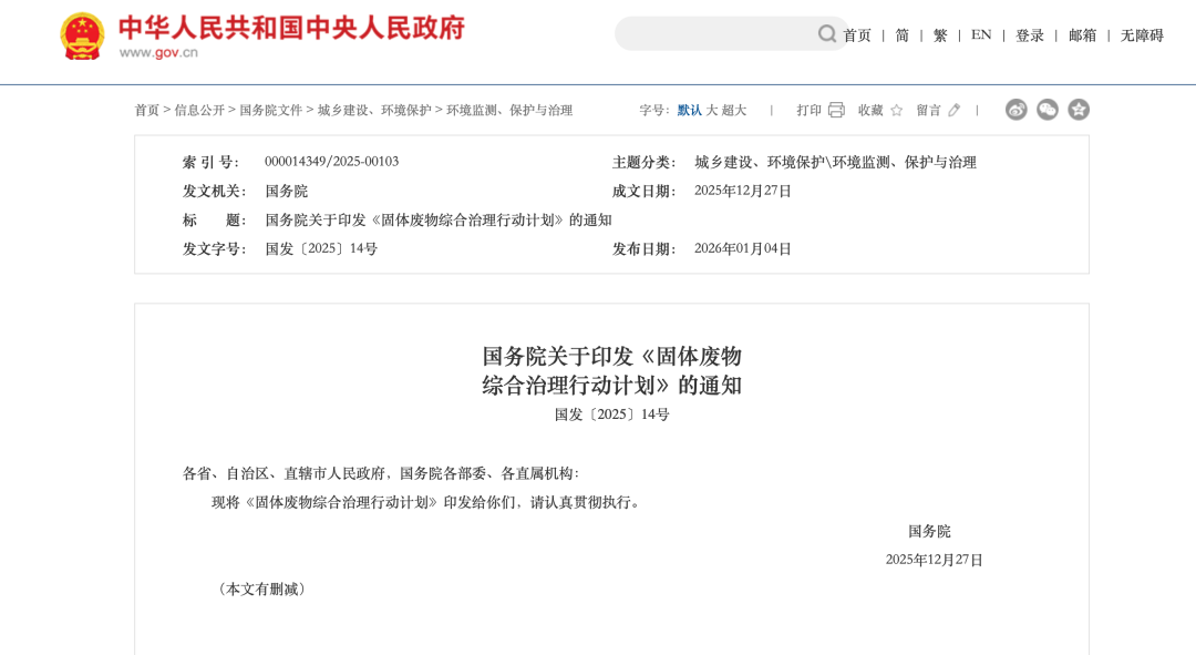 第三推: 政策密集落地, “固废十条”筑牢发展根基 2026年1月,国务院印发《固体废物综合治理行动计划》(“固废十条”),作为固废治理领域的纲领性文件,其对再生资源行业的扶持导向,为废钢产业发展再添强心剂。 “固废十条”明确2030年主要再生资源年循环利用量达5.1亿吨,废钢作为核心再生资源被重点提及。文件还提出规范工业固废分类收集、支持“互联网+回收”模式、安排不少于1%产业用地保障再生资源设施建设等举措,从原料供给、流通效率、用地保障多维度破解行业堵点。叠加此前的税收优惠、绿色金融政策,废钢行业发展的政策环境持续优化。