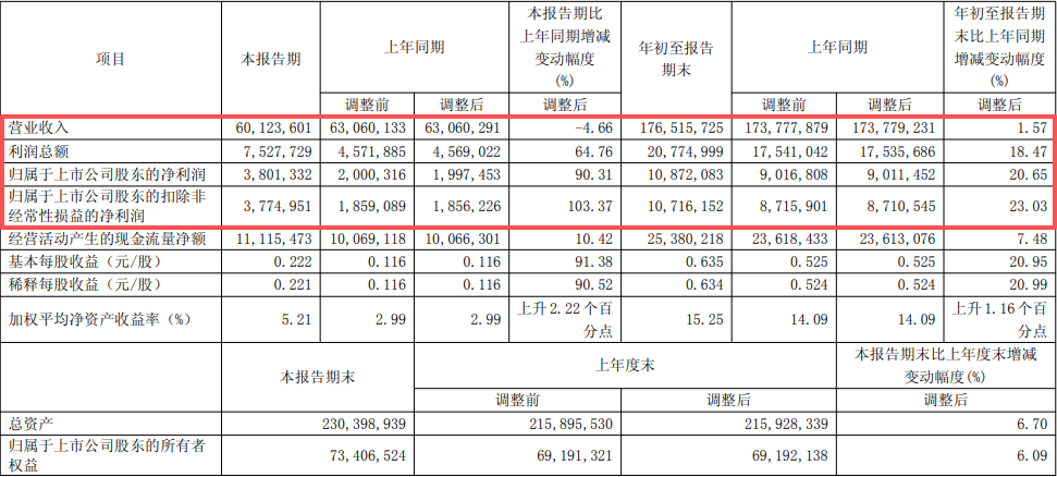 中国铝业第三季报,营业收入为601.2亿元,同比下降4.66%;归属于上市公司股东的净利润为38.01亿元,同比增长90.31%;经营活动产生的现金流量净额达111.15亿元,同比增长91.38%。