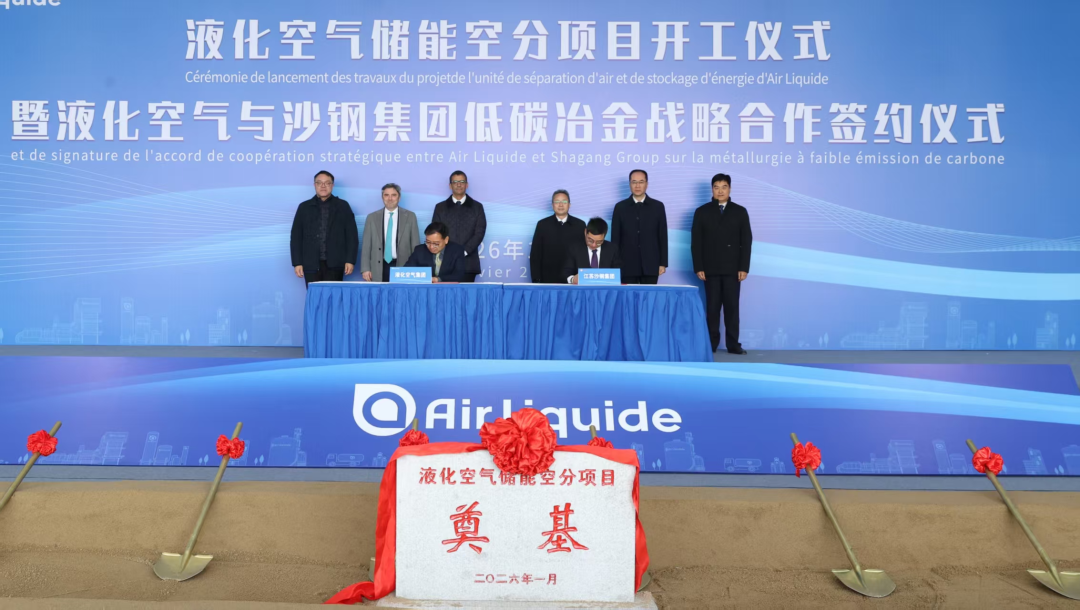 1月9日上午,液化空气储能空分项目开工仪式暨液化空气与沙钢集团低碳冶金战略合作签约仪式在冶金园(锦丰镇)举行,标志着冶金行业全球最大单体空分项目正式开工。