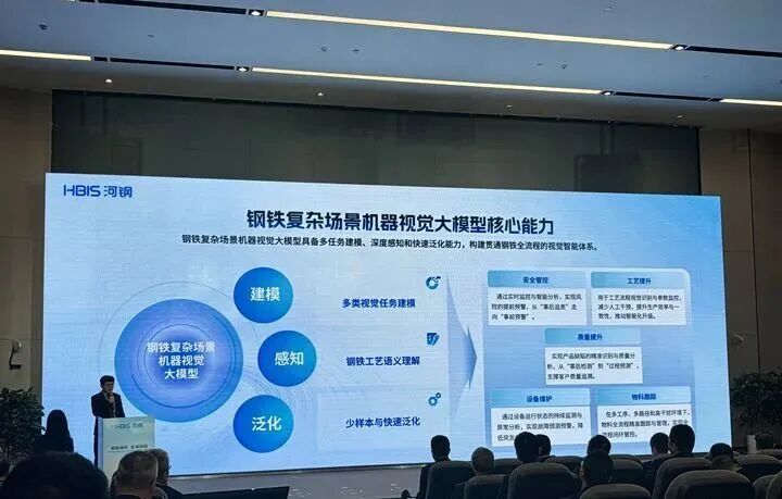 发布会现场展示了河钢威赛博大模型2.0在钢铁典型场景应用的示范案例——“全过程一键炼钢智能体”“多介质全流程协同极致能效大模型”“钢铁复杂场景机器视觉大模型”,展现大模型的核心优势和落地成效。 河钢集团党委书记、董事长刘键表示,河钢不断加快人工智能等数智技术创新,深入实施“人工智能+”行动,推动全要素智能联动,全方位、深层次、高水平赋能新型工业化,特别是充分发挥资源、技术、场景等优势,持续构建完善覆盖钢铁全价值链的全域智能体,全面提升企业运营效率、效益和核心竞争力。围绕深化拓展“AI+钢铁”,河钢将持续深入推进钢铁大模型研发应用,提升产线智能化水平,致力建设“领航级”智能工厂,为钢铁行业提供更多可落地、可持续演进的智能制造体系,打造世界一流的现代化钢铁产业。 河钢集团有限公司(简称河钢)坚持“高端化、智能化、绿色化”发展,纵向推进钢铁产业链条向高端制造延伸,横向推进同类业务结构性重组,加快实现“钢铁向材料、制造向服务”转型,致力于建设最具竞争力钢铁企业,成为具有世界品牌影响力,钢铁材料、新兴产业、海外事业与金融服务协同发展的跨国工业集团。截至2024年底,河钢资产总额达5539亿元。2024年,实现营业收入4021亿元,连续17年上榜世界500强。