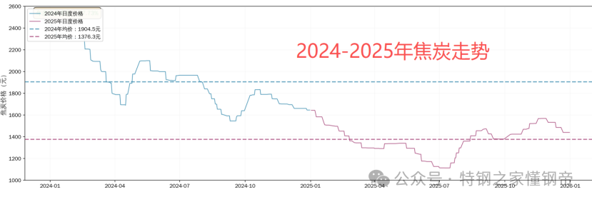 2025年焦炭均价1376元/吨,跌价528元/吨
