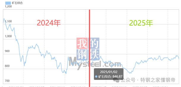 考虑矿石价格的滞后性,2023年10月-2024年2月铁矿石暴跌,2025年实用消耗的铁矿石对比2024年铁矿石跌价约10美元/吨