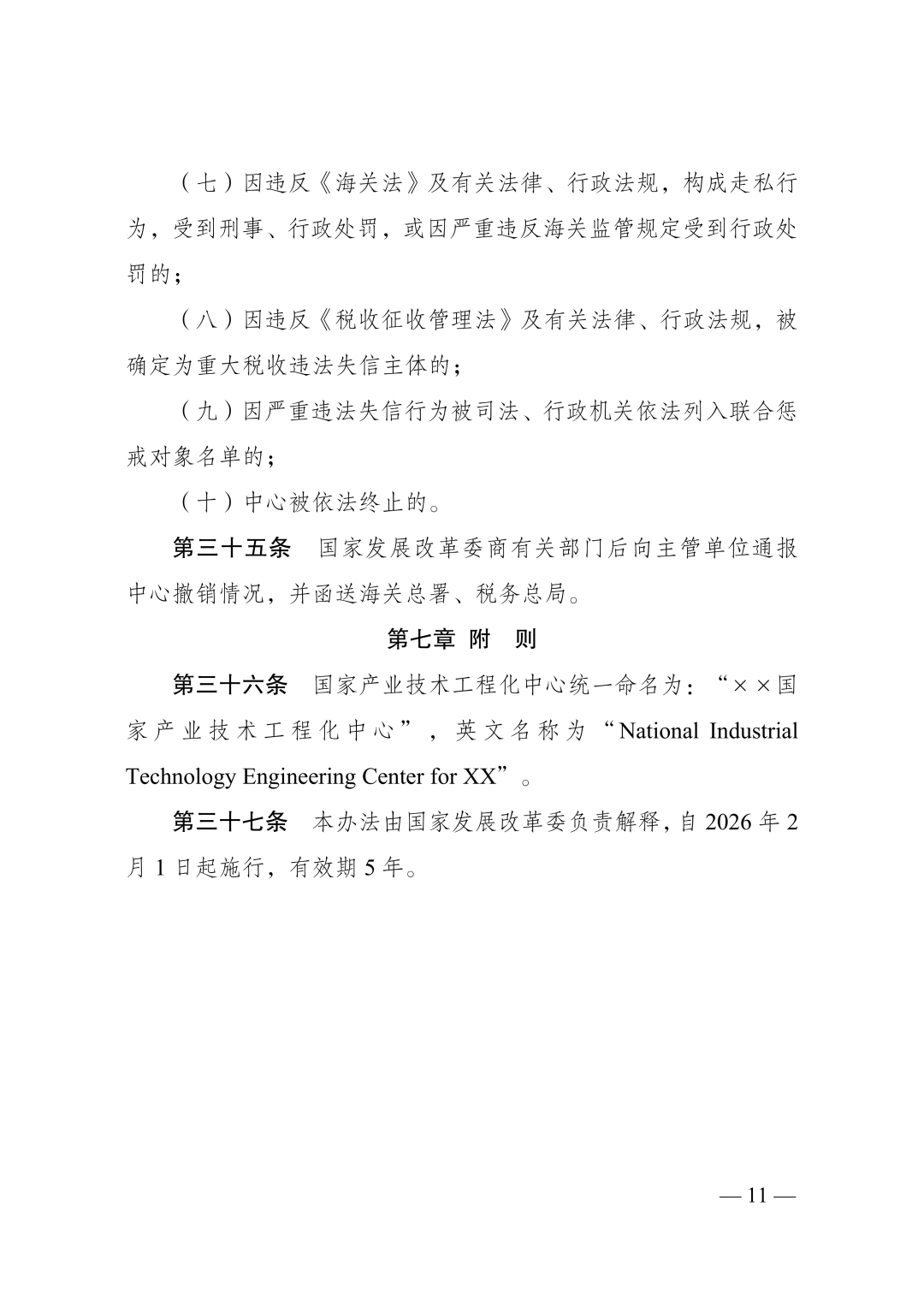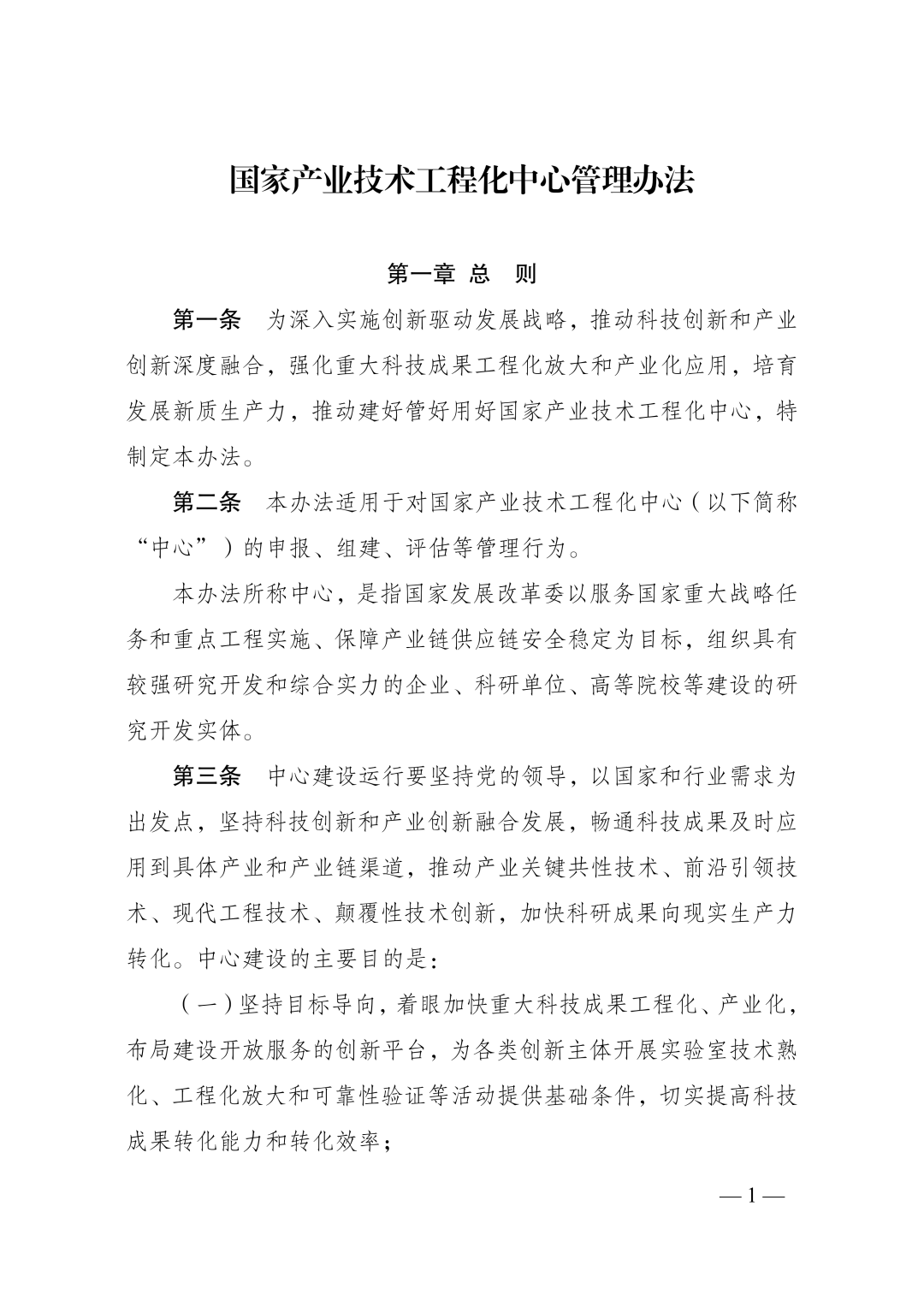 发改高技规〔2025〕1747号 中央和国家机关有关部委,各省、自治区、直辖市及计划单列市、新疆生产建设兵团发展改革委,有关中央企业: 为深入实施创新驱动发展战略,推动科技创新和产业创新深度融合,强化重大科技成果工程化放大和产业化应用,培育发展新质生产力,推动建好管好用好国家产业技术工程化中心,我们制定了《国家产业技术工程化中心管理办法》,现印发给你们,请遵照执行。 国家发展改革委 2025年12月29日