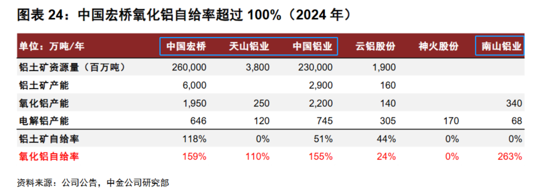 氧化铝并不缺,很多公司(宏桥、中铝、天山、南山)自给率都在100%以上。