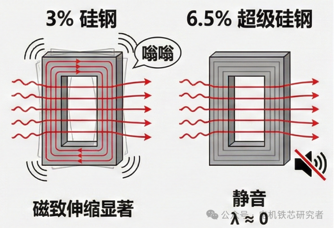 普通3%硅钢的磁致伸缩系数(λs)虽然不大,但在高频强磁场下依然显著。2.磁晶各向异性的“归零”效应