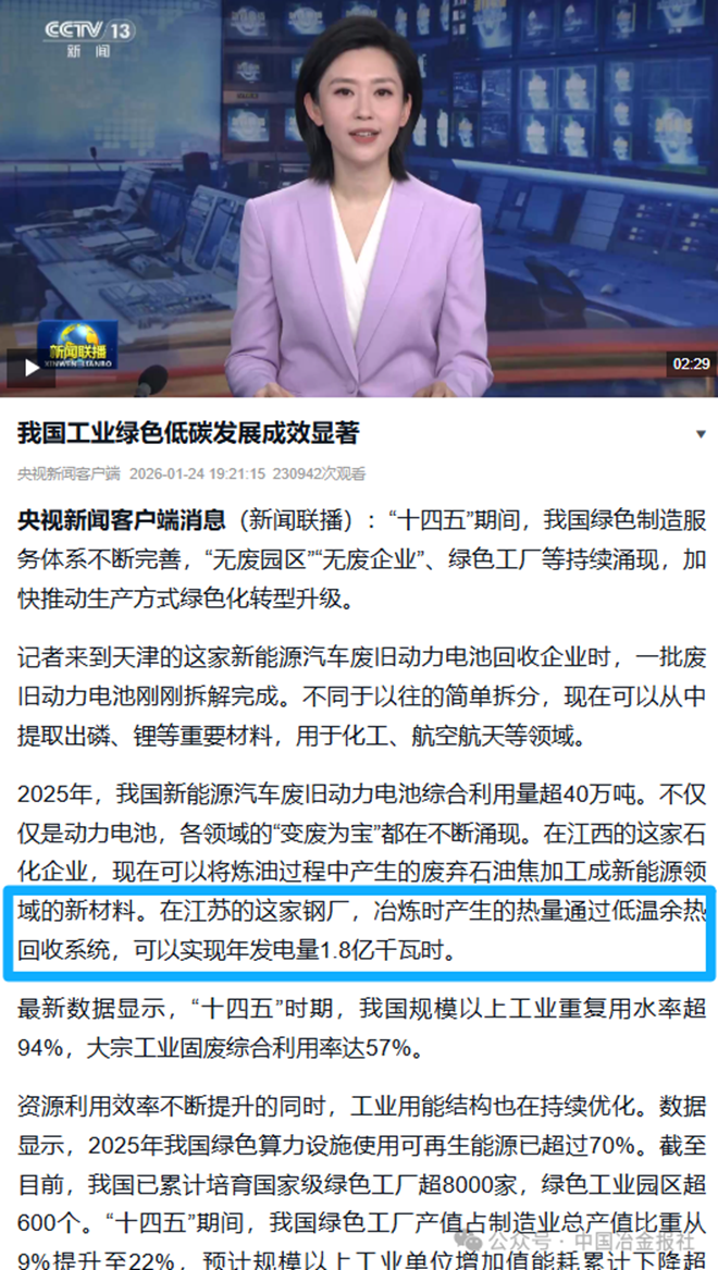 谁再说中国钢铁是 “傻大黑粗”?看央视镜头怼脸拍的这波操作 —— 江苏南钢的冶炼炉刚 “吐” 出高温余热,低温回收系统就直接把废热怼成了电!一年 1.8 亿千瓦时发电量,够给 100 万个家庭供满一整年的电!更狠的是 “十四五” 数据:全国工业重复用水率超 94%,大宗固废利用率 57%,绿色工厂产值占比从 9% 飙到 22%—— 南钢这波 “变废为电”,直接把传统钢厂活成了环保界的 “现金奶牛”!