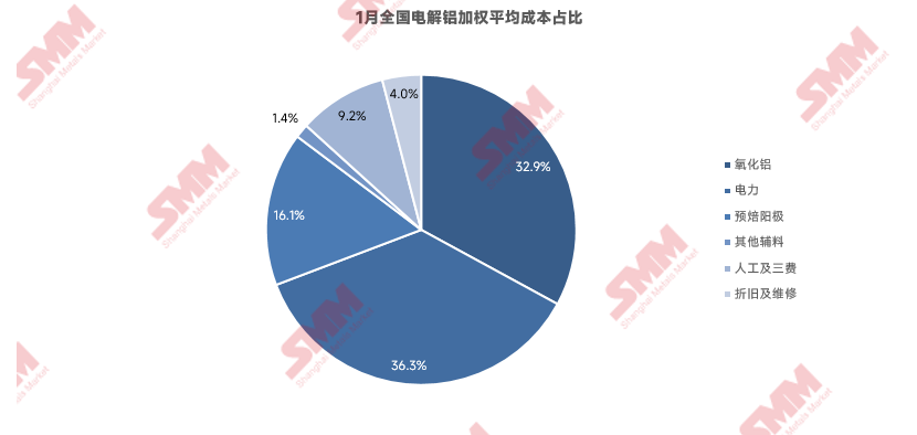 电价方面,进入枯水期,1月云南、四川等水电占比较高的省份电价明显提高,全国电解铝平均电力成本上移。