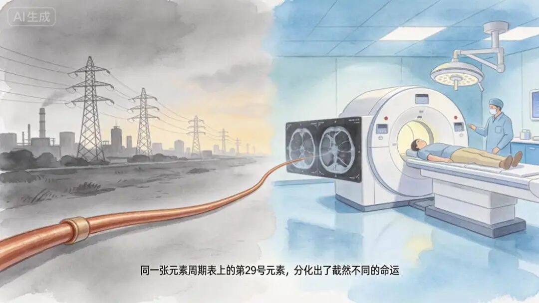 它们看起来一模一样,但内在的身份决定了它们的价值 —— 从几万元一吨,到几百万元一克,相差千万倍。纯铜由 70% 的铜-63和30%的铜-65组成。它们默默无闻地导电传热。而它们表兄弟 —— 铜-64和铜-67,正在医院的核医学科里,为癌症患者点亮希望。曾经,只能按毫克进口,如今,中国已经启动国产化进程,国产同位素铜已经投入使用。下次当你拿起一段铜线时,请记得:那不仅是导电的金属,里面还藏着两个价值连城、功夫高强的孪生兄弟。点个“ 在看”,让更多人知道,咱们家里的铜,有多牛。
