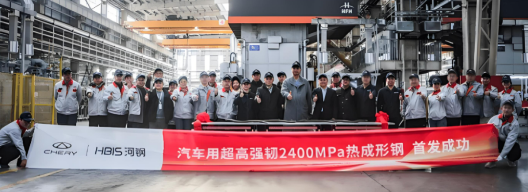 最后是“低调黑马”——河钢。河钢的动作比前三家早一些,在去年12月份,就联合奇瑞汽车,发布了双方联合开发的2400MPa超高强韧热成形钢,而且已经完成了车门防撞梁、门槛梁等零部件的实车试冲和碰撞测试,具备了量产条件。