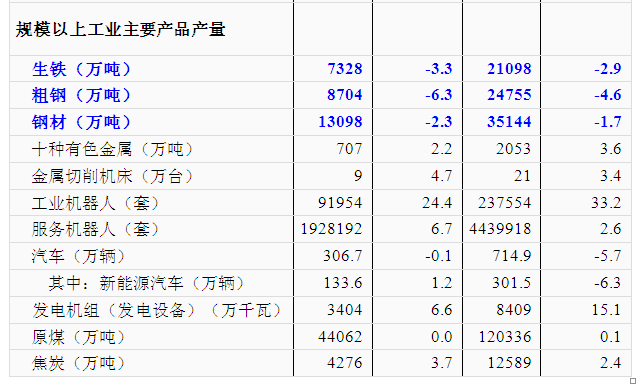 一季度粗钢产量24755万吨,同比下降4.6%;生铁产量21098万吨,同比下降2.9%;钢材产量35144万吨,同比下降1.7%。