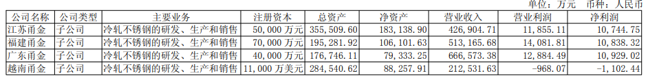 上半年,行业整体延续了去年的偏弱势基本面。公司经营依旧承压,但公司全员以保障生产有序进行作为指导方针,全力拓展公司业务,保障各生产基地接单、生产有序进行。截至报告期末公司完成冷轧产品入库产量174.11万吨,同比增加5.79%;销售167.34万吨,同比增加4.29%。实现营业收入201.25亿元,同比减少0.85%,归属于上市公司股东的扣除非经常性损益的净利润2.94亿元,同比减少4.67%;公司资产总额155.50亿元,同比增加7.96%;归母净资产58.41亿元,同比增加1.93%。 截至报告期末,公司累计对靖江甬金年加工120万吨高品质宽幅不锈钢板带项目投资5.51亿元,报告期内新增投资0.56亿元;累计对新越科技年加工26万吨冷轧不锈钢项目投资6.41亿元,报告期内新增投资0.62亿元;累计对河南中源钛业年产6万吨钛合金新材料项目投资5.82亿元,报告期内新增投资额0.56亿元;累计对浙江镨赛年加工22.5万吨柱状电池壳材料项目投资3.26亿元,报告期新增投资额1.13亿元;累计对四川攀金新材年加工4万吨高端钛及钛合金熔锻项目投资0.88亿元,报告期新增投资额0.65亿元。 主要控股参股公司分析 - END -